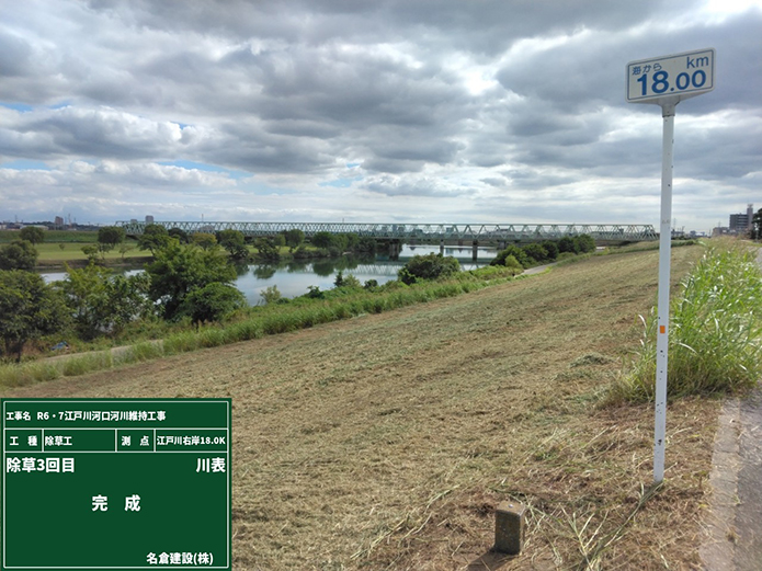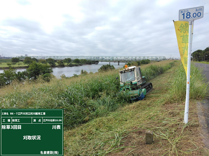 堤防除草工:2,400,000m2 堤防集草工:350,000m2 刈草運搬工:341,000m2 堤防養生工:1式 維持修繕工:1式